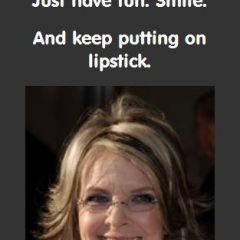 I want to tell women: Don’t give up on yourself. So you made a mistake here and there, you do too much or you do too little. Just have fun. Smile. And keep putting on lipstick. — Diane Keaton, actress