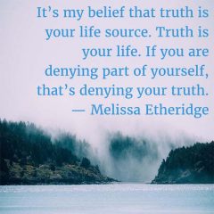 It’s my belief that truth is your life source. Truth is your life. If you are denying part of yourself, that’s denying your truth. — Melissa Etheridge, singer and songwriter